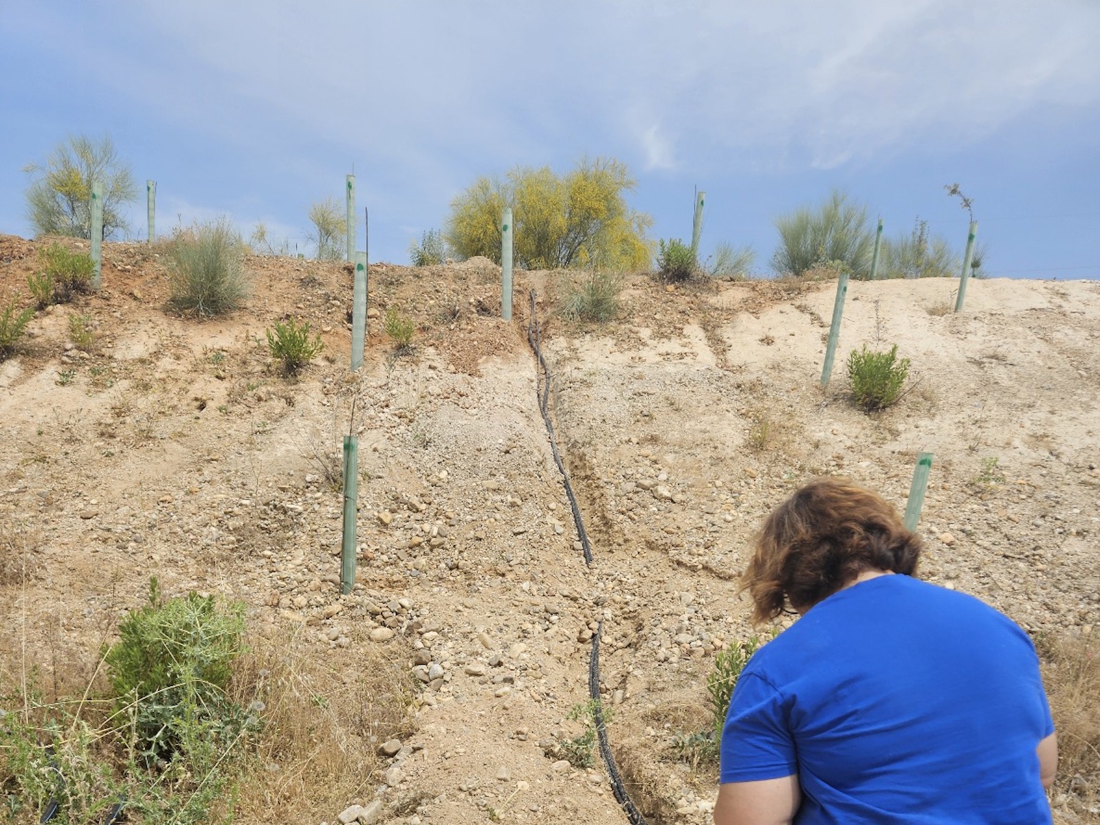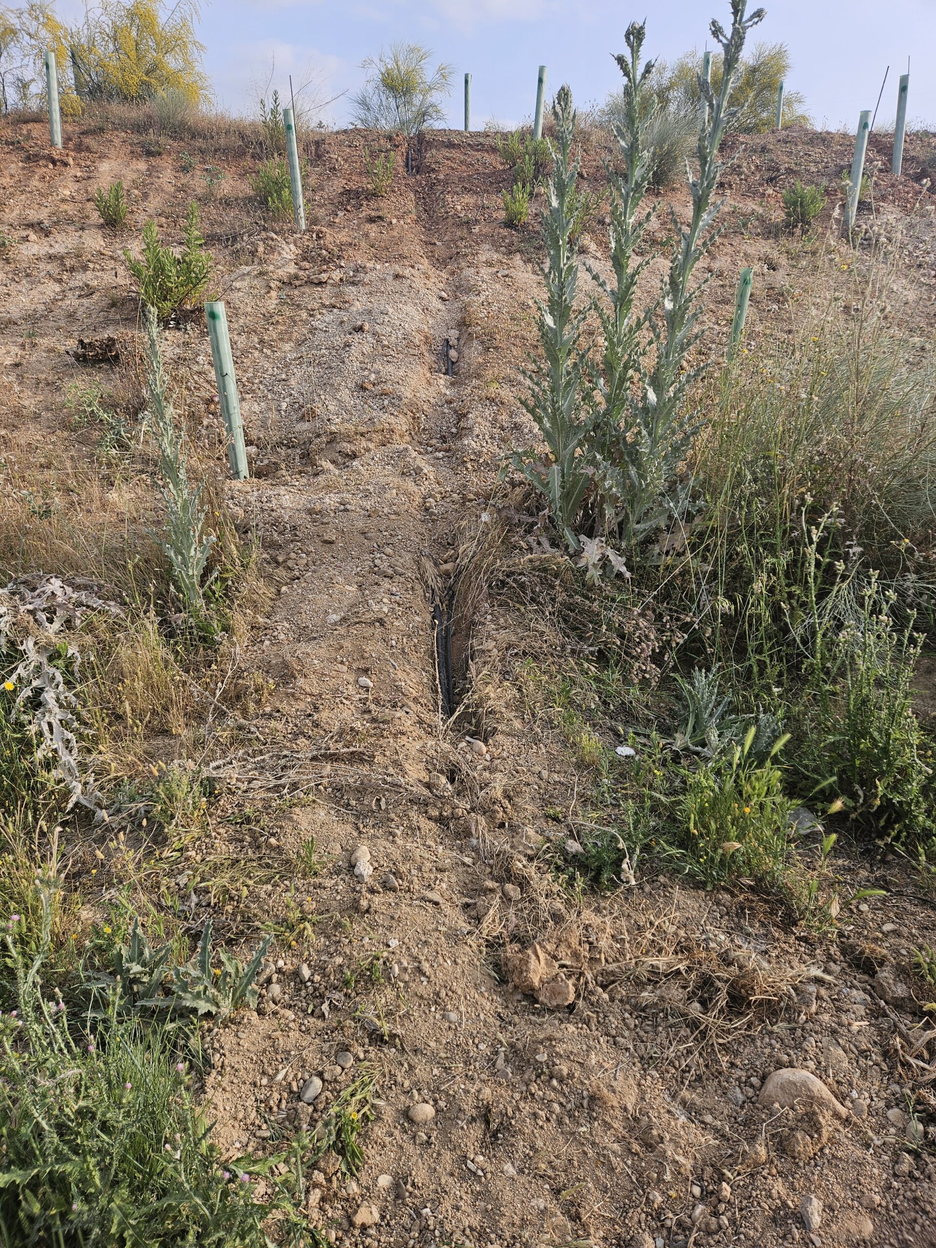 El sistema se extiende a lo largo del talud de la calle Berlín y está enterrado para evitar roturas accidentales o daños por mordidas de conejos.